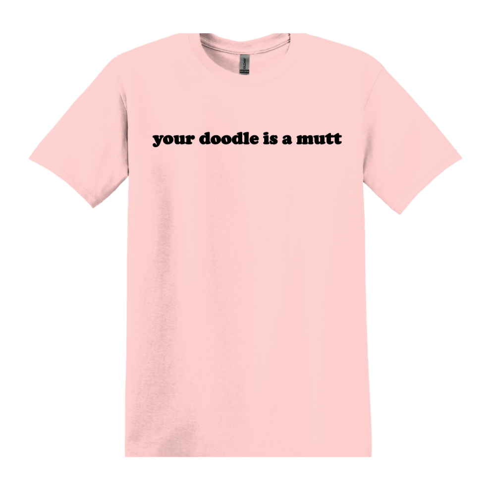 For the dog lovers who aren’t afraid to stir the pot—this tee says what everyone’s thinking (but maybe won’t say out loud). Featuring the bold phrase “your doodle is a mutt,” this shirt delivers a playful, tongue-in-cheek jab that’s perfect for casual outings, dog park laughs, or just embracing your unfiltered sense of humor. A portion of every sale goes to Pride Rock Rescue.